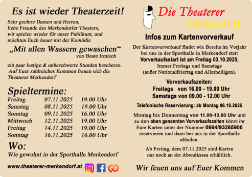 Freizeitclub Die Theaterer Merkendorf |A- 8344 Bad Gleichenberg | Merkendorf 73 ZVR-Zahl 571164584 | Alle Rechte vorbehalten | www.theaterer-merkendorf.at Gestaltung Website: Franz Altenburger